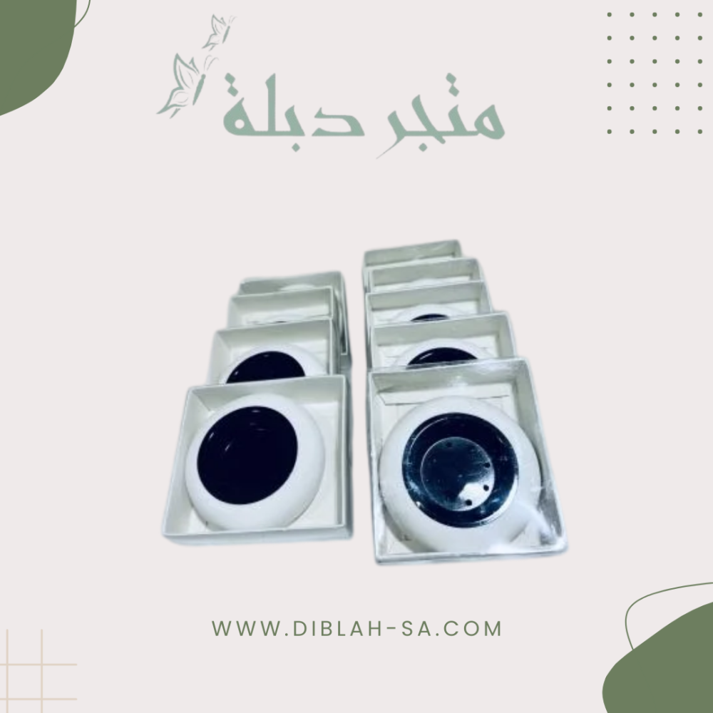 ١٢ قطعة من المباخر الصغيره المسطحه باللون الابيض مع قاعدة الفحم باللون الاسود تصميم وجديد مناسبه للتوزيعات والهدايا للاحباب في جميع المناسبات ..